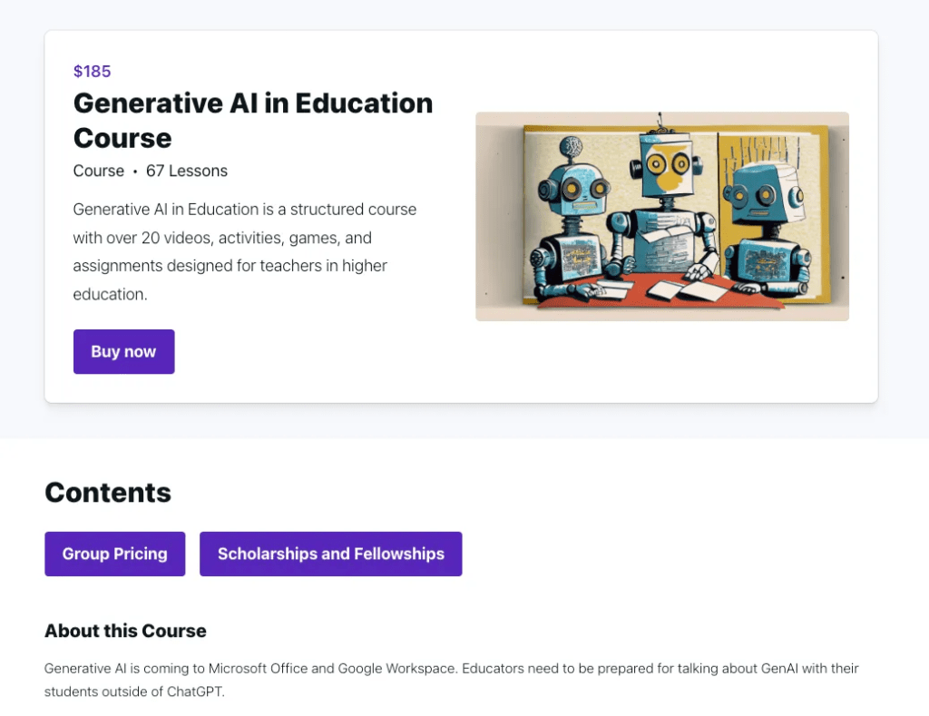 Generative AI in Education has over twenty sections and the first pathway is about AI literacy. Such understanding will be foundational in education as major tech companies continue to deploy and scale generative AI systems in public. I’ve released assignments from the course under free CC-By licensing and offer discounted group pricing, scholarships, and OER Fellowships for access to the course.